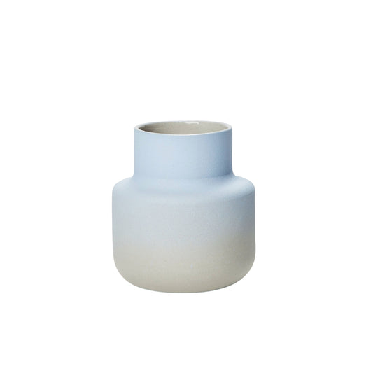 Alle Vasen werden ausschließlich aus recycelten Porzellanmassen hergestellt. Die Farbe der Massen variiert, je nach Batch, von grau bis graublau. Die Vasen sind nur im Inneren glasiert und bleiben außen biskuit.