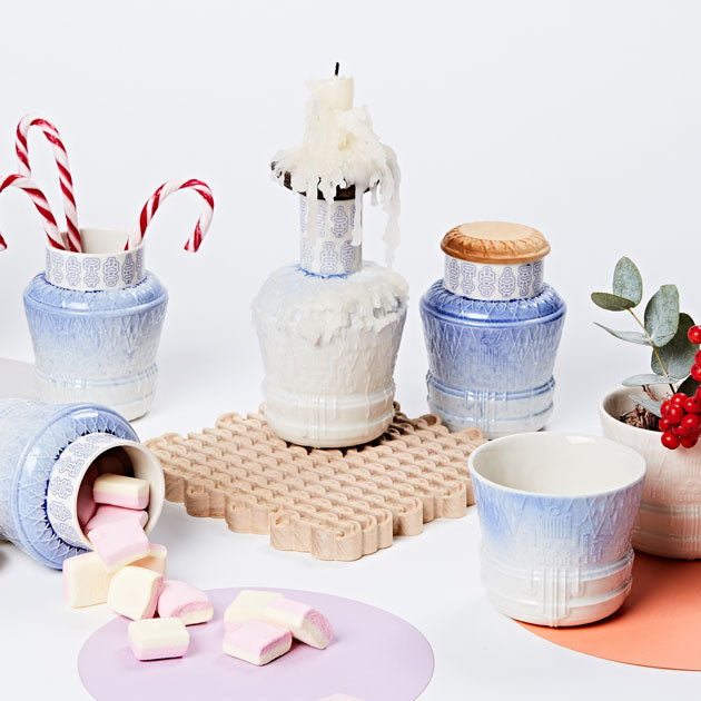 Unter dem Motto Manufaktur trifft Hotellobby zeigen verschiedene Künstler:innen aus den Bereichen Mode, Schmuck, Illustration und Keramik am 4. Dezember ab 16 Uhr ihre Arbeiten im Atrium des Moabiter Hotels MOA. berlinergrau ist mit einer kleinen Auswahl an Geschirr und Vasen ebenfalls mit dabei.